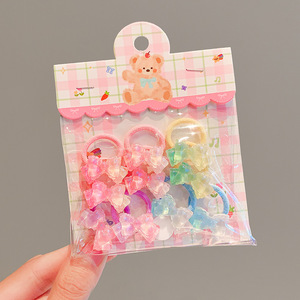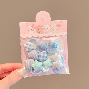 儿童格纹五角星星发圈甜美女童蝴蝶结爱心发绳宝宝不伤发皮筋头绳