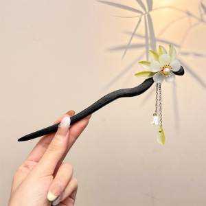 复古国风头饰天然黑檀木新中式簪子旗袍日常盘发发簪女高级感流苏