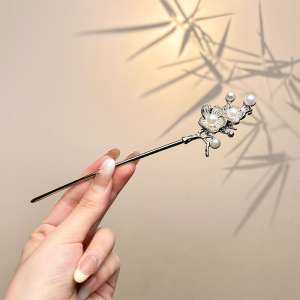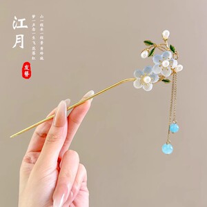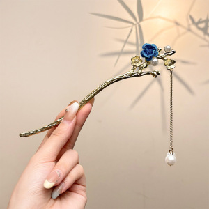 21#梅花浅蓝单花珍珠流苏发簪(袋装
