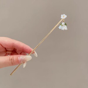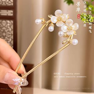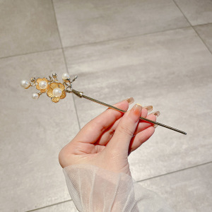 10#金色珍珠花朵U形发簪