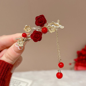 78#玫瑰花枝流苏发簪-金色 (袋装)