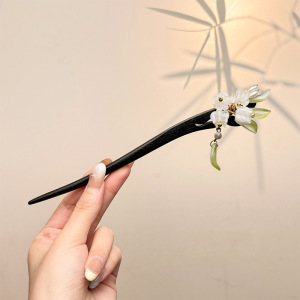 4#水墨花朵发簪约19cm