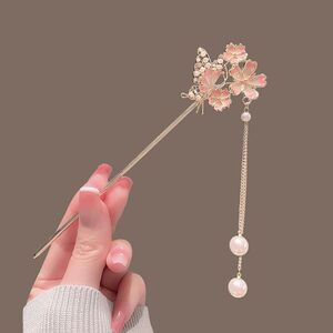 20#梅花粉色单花珍珠流苏发簪(袋装)