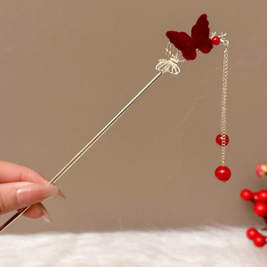 12#红色蝴蝶流苏发簪约17.5cm