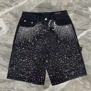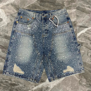 现货!!2025夏季新款a版满天星烫钻带内衬百搭休闲短款牛仔裤