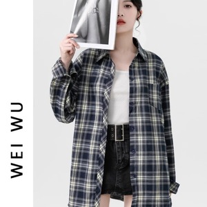 美式复古格子衬衫外套女新款宽松小个子衬衣长袖上衣春秋薄款韩版