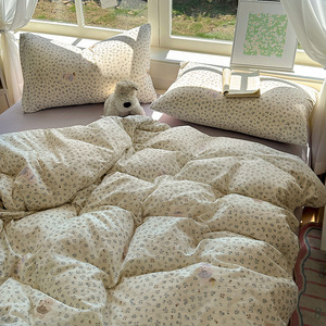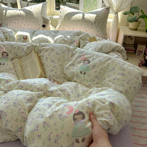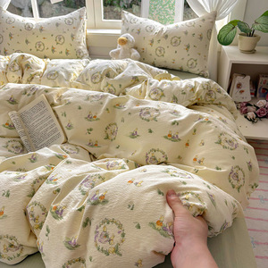 新款有氧双层纱纯水洗棉四件套小清新碎花ins风床单宿舍三件套