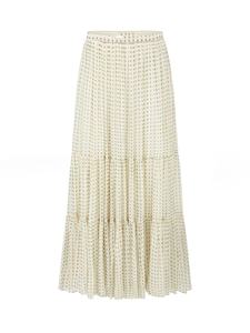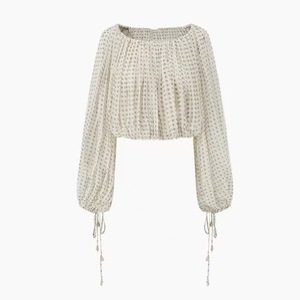 法式印花金丝温柔风一字领露肩泡泡袖抽褶上衣半身长裙时尚套装女