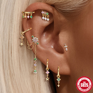 S925纯银珠子吊坠耳环耳环配件菱形五角星彩色吊坠earrings charm