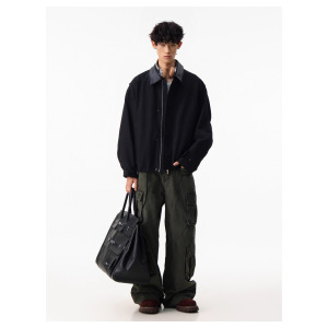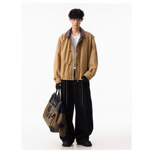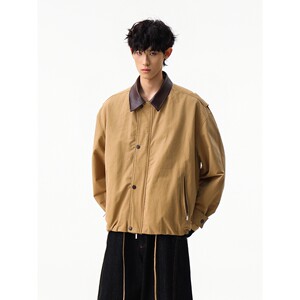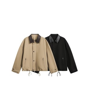 ACE春秋新款复古英伦风PU皮翻领夹克翻领工装外套男狩猎装HJ5807