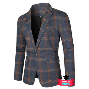 2025新款跨境代发男士格子印花纽扣前襟翻袋西装外套正装