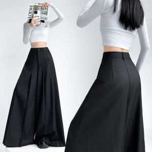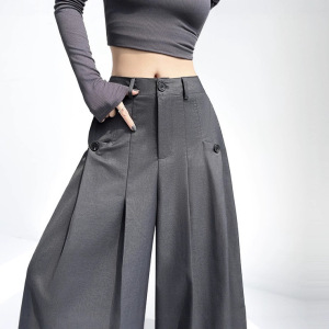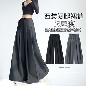灰色西装阔腿裙裤女2025早秋新款高腰宽松垂感慵懒风大摆休闲裤子