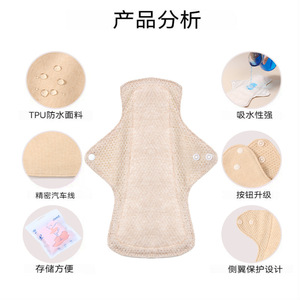 亚马逊纯棉可水洗卫生巾小护垫防漏少女孕妇可用米色彩棉可洗护垫