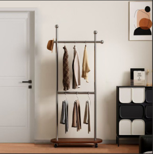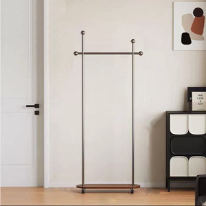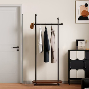 衣帽架中古风新中式卧室落地式挂衣架室内带轮可移动衣服置物架