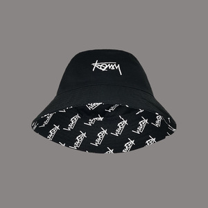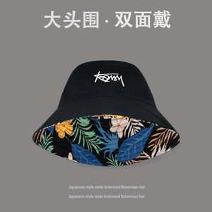 跨境日系大头围渔夫帽欧美刺绣字母双面戴遮阳盆帽户外休闲防晒帽