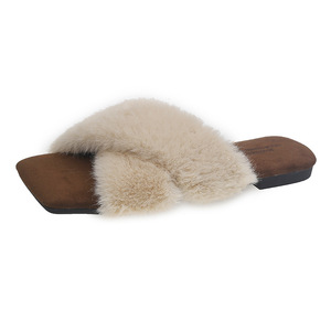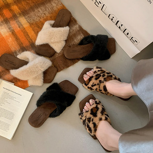 网红毛毛拖鞋女外穿2024年秋季貂毛交叉平底休闲棉拖鞋懒人半拖鞋