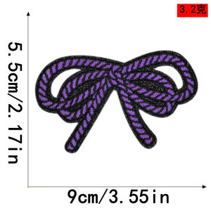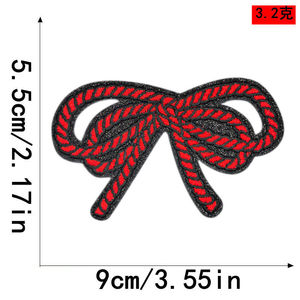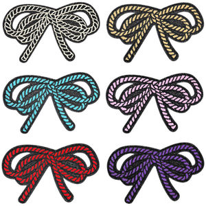 美新现货跨境闪皮多彩绳结纹蝴蝶结刺绣布贴服装帽子箱包补丁贴