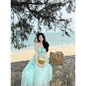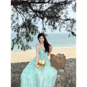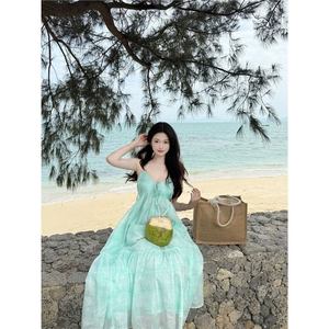 夏日超好看多巴胺海边度假浪漫风连衣裙新款微胖拍照出片蓝色长裙