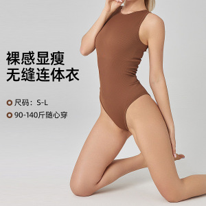 亚马逊欧美热销无缝瑜伽背心连体三角裤舞蹈健身收腹塑形紧身衣女