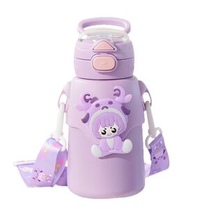 新款双饮转转保温杯316不锈钢吸管杯卡通公仔儿童节礼品水杯促销