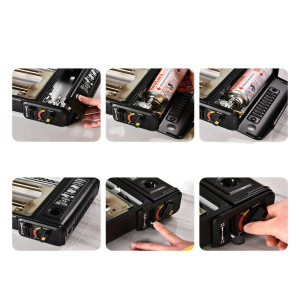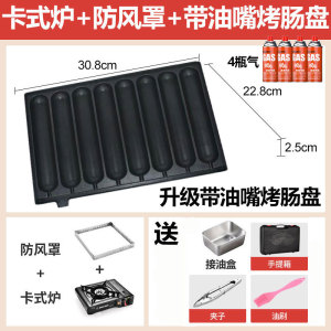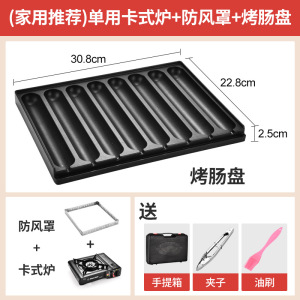 带油嘴烤肠盘+圆形火单用卡式炉+防风罩(送4件套)
