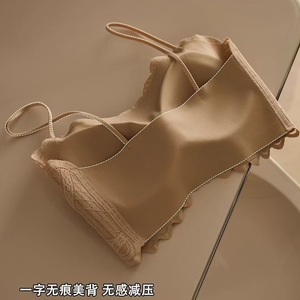蕾丝抹胸防走光美背内衣女短款百搭细肩带免穿文胸一体式裹胸短款