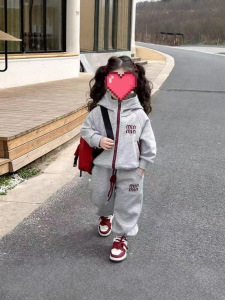 女小童春秋款套装2025新款宝宝字母开衫外套小女孩洋气运动两件套
