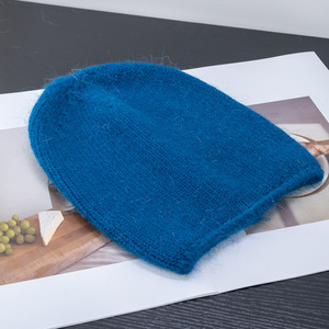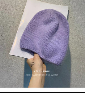 高级感兔毛针织帽显脸小女秋冬保暖百搭网红直筒包头帽堆堆毛线帽