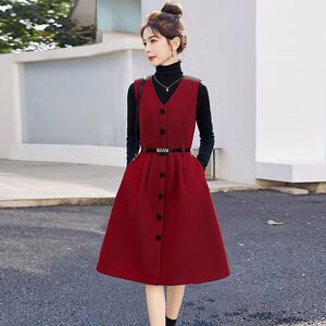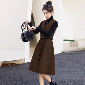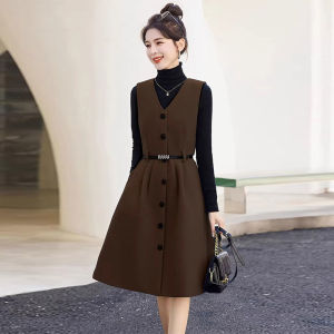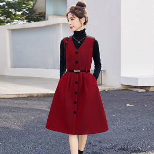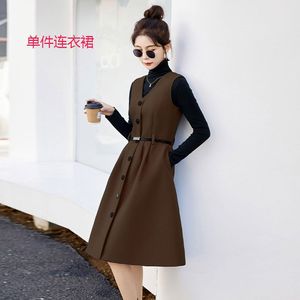 气质时尚秋冬季套装毛呢背心连衣裙两件套单排2025领显新款新中式