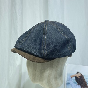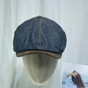 日系牛仔布前进帽子女秋冬百搭保暖鸭舌贝雷帽麂皮绒檐口报童潮帽