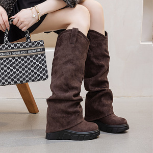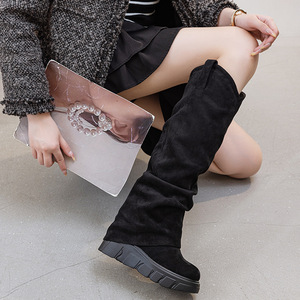10cm高筒靴女不过膝长靴2025秋冬季新款圆头堆堆靴时尚瘦瘦女鞋潮