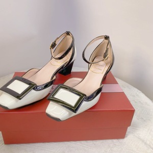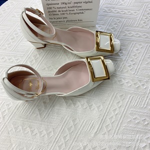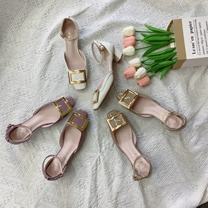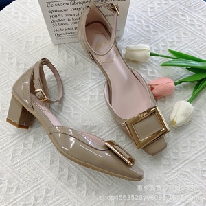 葡萄妈春夏百搭方扣小方头浅口高跟鞋女粗跟平底通勤单鞋女中跟
