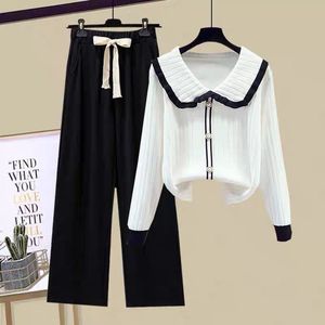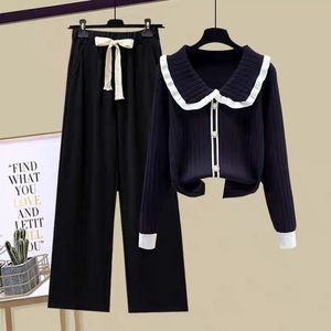 年春秋小香风套装休闲新款秋装两件套减龄休闲阔腿裤针织衫女2025