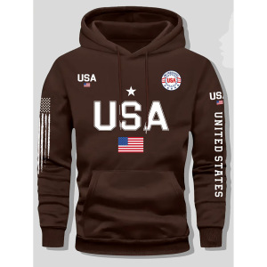 跨境外贸美式潮牌USA印花连帽卫衣男装2025时尚帽衫宽松百搭上衣