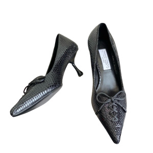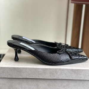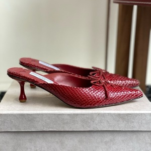 25ss春夏系列JC新款尖头蛇纹牛皮高跟凉鞋拖鞋简约奢华蝴蝶结单鞋