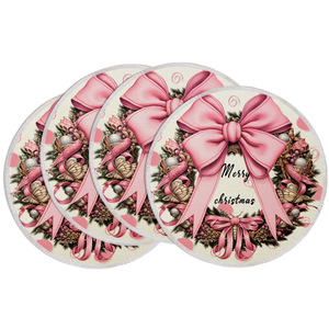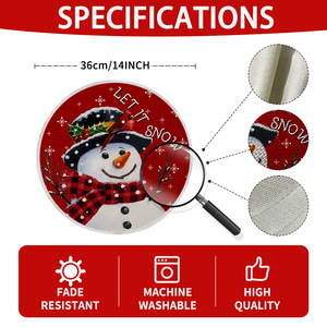 跨境热销圣诞节圆形餐垫亚麻印花餐桌垫圣诞节餐桌装饰布艺餐垫