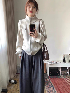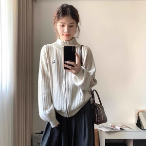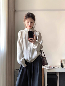 半高领灰色毛衣开衫外套女秋冬季2025新款慵懒风宽松针织上衣外搭