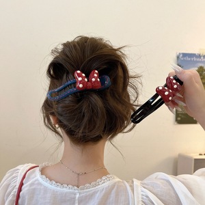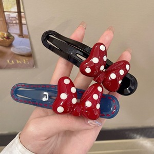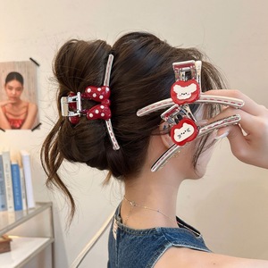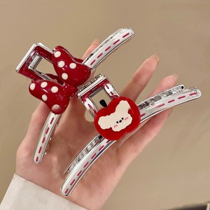 气质红色蝴蝶结鸭嘴夹女高级感2025新款一字发抓后脑勺抓夹盘发夹