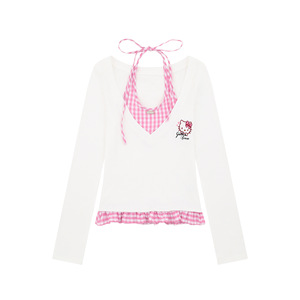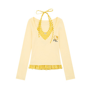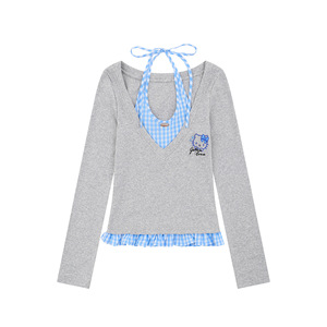 Mint Miaow 25秋季新品美式甜美趣味猫咪刺绣假两件长袖T恤