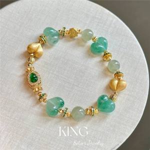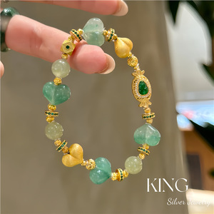 青柠气泡水手串 | 925银镀金屁桃非洲翠复古纯银珠串