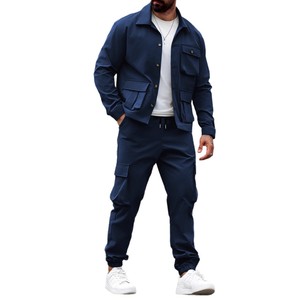 跨境 亚马逊春秋季爆款男士复古工装夹克多口袋长裤潮流外贸套装