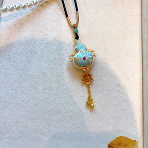 蓝色宝花奔鹿配平安扣