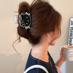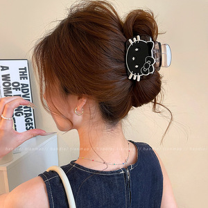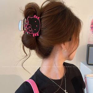 韩国东大门黑色Kitty减龄甜酷y2k少女心卡通可爱中号半扎马尾抓夹