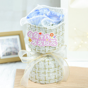 玫瑰针织花束编织香皂花成品小蜜蜂生日礼物女生礼物小香风花束