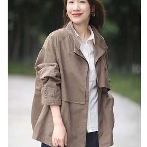 宽松工装春秋季外套女春秋大码女装韩版韩版2025装休闲立领风衣女