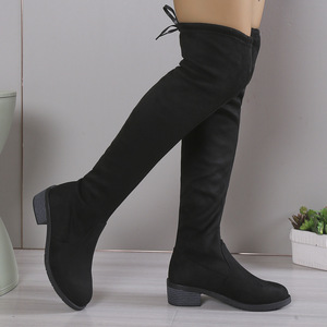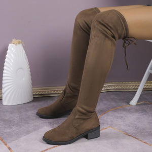 过膝长筒靴子女新款欧美大码长筒靴女式绒面高跟43码后系带长靴女