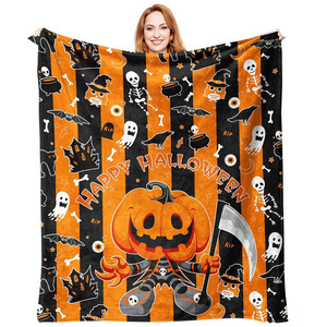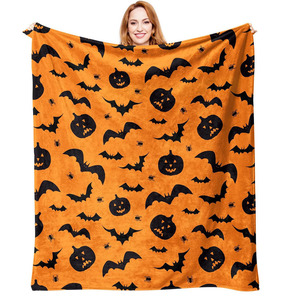 跨境万圣节毛毯卡通南瓜印花礼品毯节日礼物办公室午睡毯沙发毯
