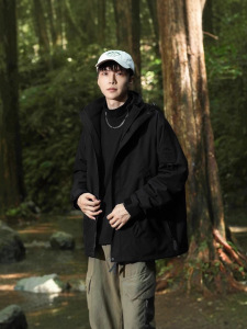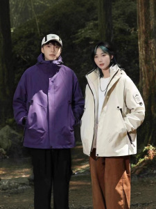 春秋季户外冲锋衣外套男女防风防水工装连帽运动情侣登山徒步夹克