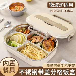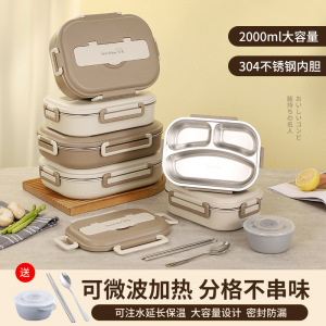 现货长方形便当盒304不锈钢饭盒可进微波炉学生午餐盒分格保温盒