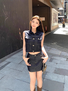 经典小香风时尚百搭休闲显瘦减龄牛仔马甲半裙套装女士马甲高级感